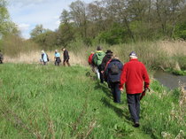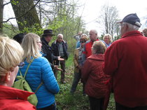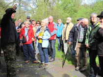 Vom Ostendplatz zur Käsmühle war der Weg der zweiten Bieberbachwanderung des Bieberer Heimatvereins am 16.04.2016. Rund 30 interessierte Teilnehmer wanderten unter der Führung von Anita Kremer und Fritz Atzenböck entlang des Bieberbaches. An der Stelle des ehemaligen Bieberer Schwimmbades machte die Gruppe halt und erfuhr von Vorstandsmitglied Fritz Atzenböck, dass das Wasser des Schwimmbades von dem Bieberbach entstammte und auch in diesen wieder nach Gebrauch ungeklärt eingelassen wurde. Die Wanderung führte weiter entlang des Baches, vorbei an über 150 jährigen Eichen, bis zu dem Abschnitt, an dem der Bieberbach von seinem gemauerten Bachbett befreit wurde und eine Renaturierungsmaßnahme einen natürlichen neuen Bachverlauf ermöglichte. Bis es soweit war, glich das Gelände während der umfangreichen Baumaßnahme einer Mondlandschaft, berichtete Norbert Wagner, Bewohner der Käsmühle. Die Natur holte sich die Baustelle zurück und heute präsentiert sich der Bieberbach in seinem neuen Bachbett als ein Stück unberührte Natur. Norbert Wagner hielt für die Wandergruppe des Heimatvereins noch eine faustdicke Überraschung bereit. Er öffnete das Grundstück der Käsmühle für die Wanderer des Heimatvereins und zeigte an dem Originalgebäude die historischen Spuren des ehemaligen Mühlenbetriebes. In der Käsmühlscheune hatte er eine Bilderschau vorbereitet, bei der die interessierten Besucher die dokumentierten Veränderungen durch die Renaturierung des Bieberbaches anschauen konnten. Egbert Färber bedankte sich bei Herrn Wagner und der Familie Brückmann im Namen des Bieberer Heimatvereins für die freundliche Aufnahme und die Vorführung der Bilder. Woher der Name Käsmühle stammt konnte Stadtführerin Anita Kremer nicht mit Sicherheit beantworten. Überliefert ist die Version, Wanderburschen hätten auf dem Weg nach Bieber in dieser Mühle nur einen Handkäs als Wegzehrung bekommen. Mit mehr als nur einen Handkäs stärkten sich Teilnehmer der Bieberbachführung bei der anschließenden gemütlichen Einkehr in die Gaststätte „Zur Käsmühle“, bei der das gerade erlebte noch einmal auf echt Bieberer Art durchgesprochen wurde.